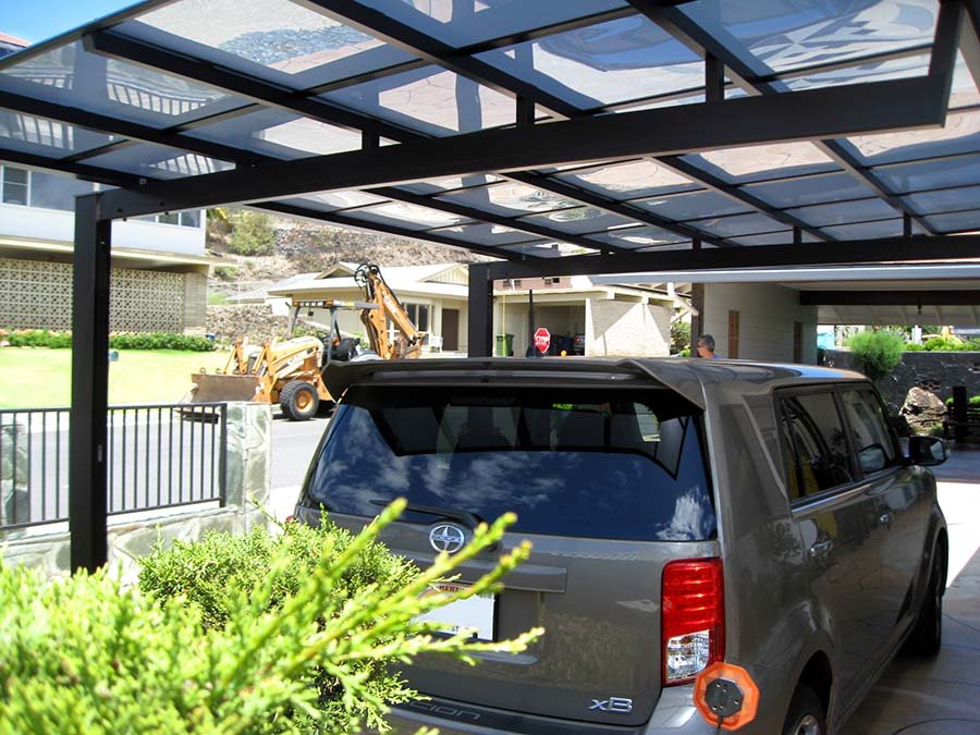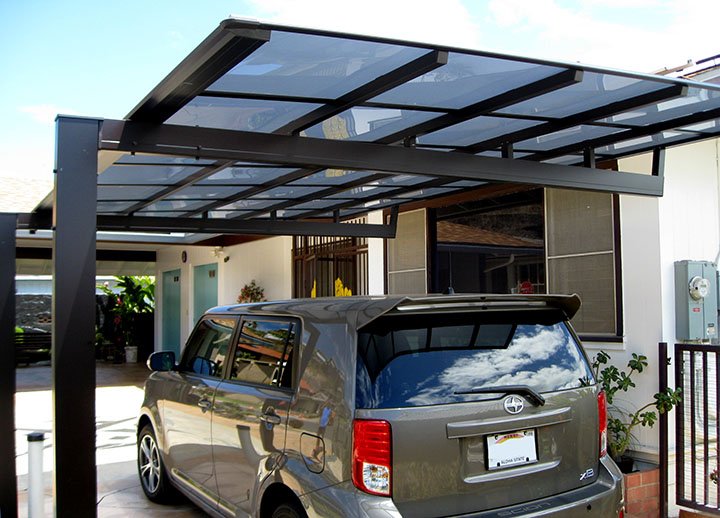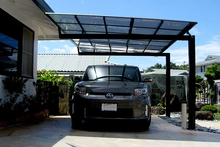 Cover your car with an MLR carport from Japan with many great options. Aside from 5 different color & roof-panel choices, you can order an extra deep beam-setup which helps turn the corner in tight spaces. The roof-slant is created with risers. This allows the option of reversing the slope to increase the shade. Materials are made of highest grade aluminum alloy and are corrosion resistant & maintenance free. See details with the MLR-Info-PDF and examples on Featured Projects page.