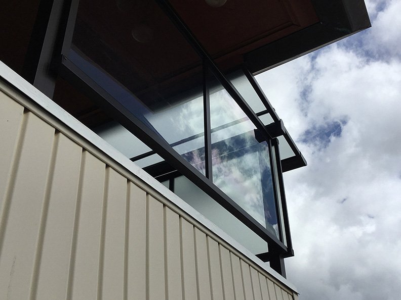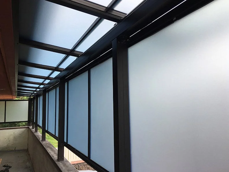 Frosted polycarbonate panels provide privacy and are also engineered to increase the amount of light coming through.