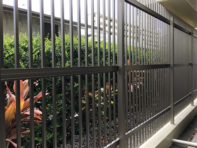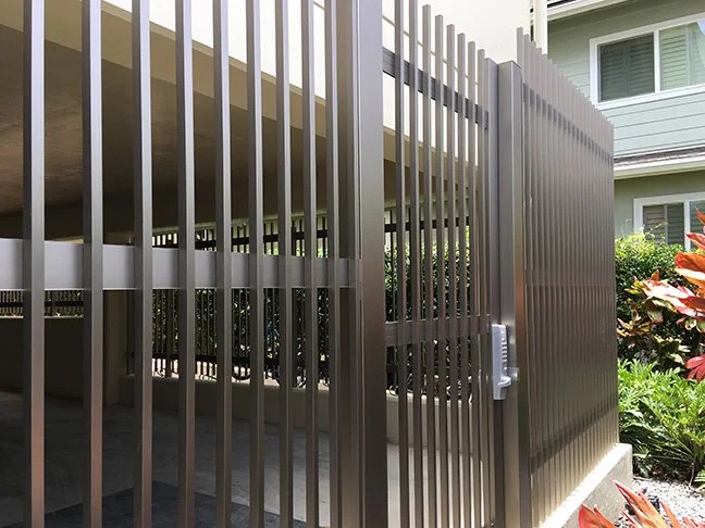 The system is delivered as a complete fence kit. Matching garden gates available. Japanese anodized aluminum fencing systems require no maintenance and NO repainting.