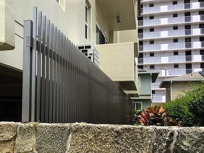 A parking garage fence and gate system enhances appearance and security. Developed over 40 years, these prefabricated fences are precisely extruded and manufactured in Japan with advanced engineering.